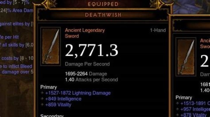 Deathwish is a Legendary sword in Diablo III, one of the five Quinblades, added in patch 2.4.0 (though it was present in game files since patch 2.1). It requires character level 70 to drop. The unique affix boosts all channeled Wizard skills, increasing their damage output multiplicatively. Other damage sources benefit from it as well, thoug…Stats (Level 70)TriviaDeathwish Legendary Sword Properties: 392.0 Damage Per Second 168–392 Damage 1.40 Attacks per Second While channeling Arcane Torrent, Disintegrate, or Ray of Frost for at least 1 second, all damage is increased by 250-325%. One of 3 Magic Properties (varies): +626–750 De… ·