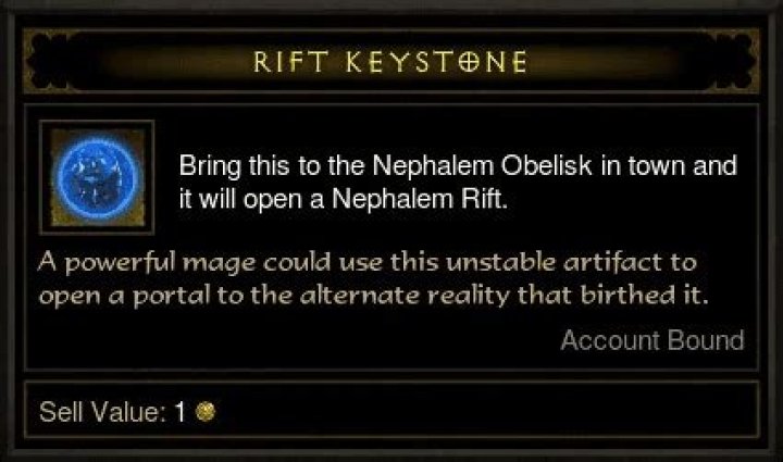 They drop from level 70 Rift Guardians in normal Nephalem Rifts. On higher difficulties, two or even three Keystones may drop at once. The GRK is lost when used. Even if player beats the Greater Rift in time, they will be forced to find a new GRK. To participate in the Greater Rift run, every player must contribute a GRK.