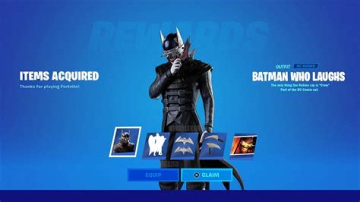 Launch Fortnite with the same Epic account and enter the Battle Royale game mode. Upon loading in, you will receive a gift box showing your unlocked The Batman Who Laughs Outfit, Robin’s Perch Back Bling, and Dark Days Loading Screen. You can select “EQUIP” or “CLAIM” to close.