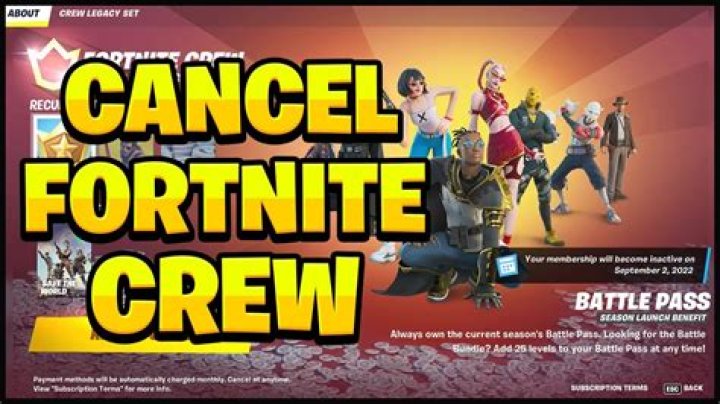 1 Open Fortnite 2 Scroll to Item Shop 3 Head down to Fortnite Crew section 4 Click “Cancellation Info” 5 Chose “Leave Fortnite Crew” and go through the confirmation process