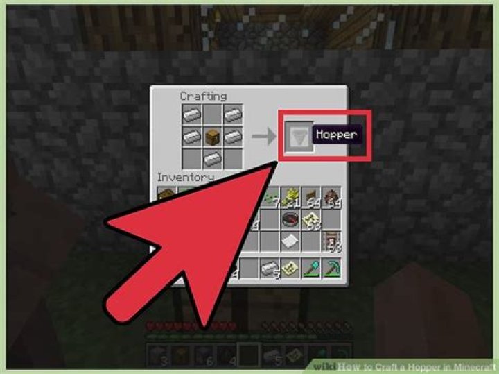 Add Items to make a Hopper. In the crafting menu, you should see a crafting area that is made up of a 3×3 crafting grid. To make a hopper, place 5 iron ingots and 1 chest in the 3×3 crafting grid.When making a hopper, it is important that the iron ingots and chest are placed in the exact pattern as the image below.