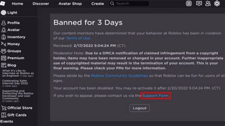 How do you get unbanned from Roblox?