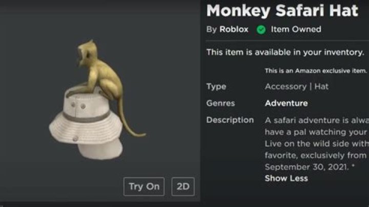 The Roblox Monkey Safari Hat has become a much sought-after item for players’ avatars, due to the rarity of this cap. Unlike many of the free items that anyone can claim from the Avatar Shop, this simian headgear can only be claimed by those with both an Amazon account and access to Roblox via an Amazon device such as a Fire Tablet.