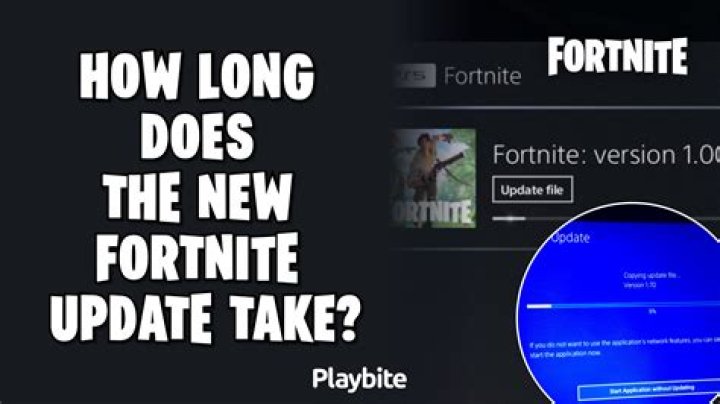 How Long do Fortnite Updates Normally Take? Downtime for each update fluctuations. But it often lasts anywhere between two and four hours. A large update and a long downtime are typically saved for an endofseason event. After the downtime is finished, all PC, PlayStation, Xbox, Switch, and mobile servers will activate again.