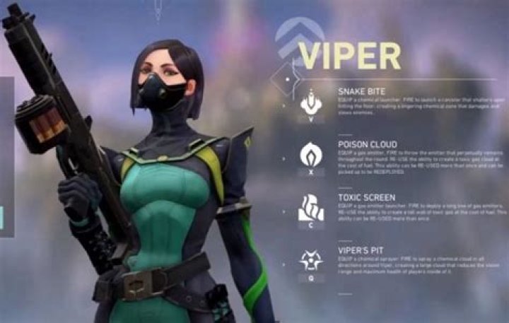 37 hàng · · Viper is a VALORANT agent who deals with poison and acid, burning down and suffocating her enemies. She uses fuel to activate her powerful abilities Poison Cloud and Toxic Screen to melt passing targets and block vision. The fuel gauge recharges over time, allowing Viper to control areas for extended time.