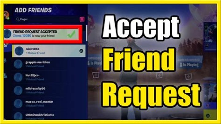 Simple Ways to Accept a Friend Request on Fortnite for PS4. Press the menu button on the controller. Select Friends. Select Friend Requests. Find the request you want to accept. Select Accept next to the request.