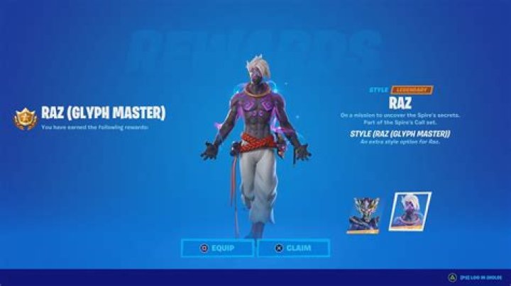 Raz is a Legendary Outfit in Fortnite: Battle Royale, that could be unlocked at Level 50 of the Chapter 2: Season 6 Battle Pass. He is part of the Spire’s Call Set. Glyph Master Raz serves as the Main Antagonist of Chapter 2: Season 6. Selectable Styles