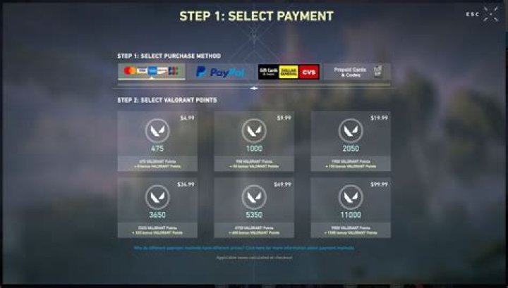 You can purchase Valorant Points using real-world currency by clicking on the Valorant Points icon located at the right of the “Store” tab in the menu. The transaction screen will then present you with the bundles of Valorant Points that you can purchase, along with a choice of purchase method.