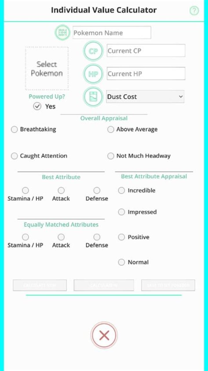 B HP. C Dust required to Power Up the Pokémon. Step 3: If you have just caught this Pokémon, and not powered it up, then check the ‘just caught’ box as it will help narrow down the results. Step 4: Click ‘Calculate’. The calculator will run and give you the possible IV combinations for your Pokémon below.
