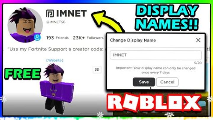 Select the Change Display Name button (icon looks like a pencil and paper) Enter your new Display Name; Click Save; When you refresh you should now see now see your Display Name as different from your Username. What else should I know about display name changes? Your display name and username will be visible on Roblox and associated experiences