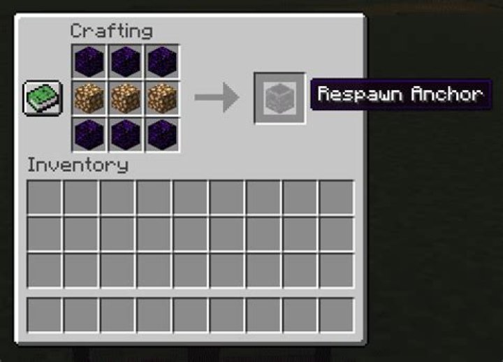 - Add Items to make a Respawn AnchorIn the crafting menu, you should see a crafting area that is made up of a 3×3…