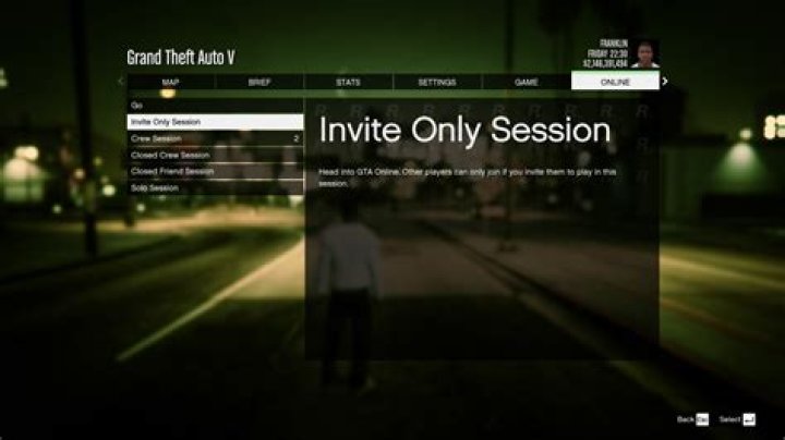 (Note: Players must first be in Story Mode in order to load into a private/invite-only session) Open the Pause Menu. Navigate to the “Online” tab and select it. Scroll down to “Play GTA Online” and select it. Select the “Invite Only Session” option, and you will be taken to a new private session.