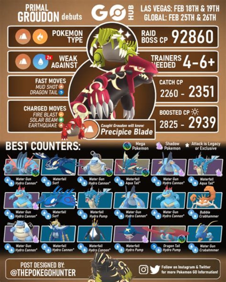 How to defeat Groudon in Pokémon GO in 2021: best Pokémon, attacks and strategies. Being a raid of the highest level and a pokémon of great strength, it will be necessary be well prepared to fight with Groudon.Therefore, we will need a team made up of creatures that can face it and that have effective attacks against the colossus of fire and earth.