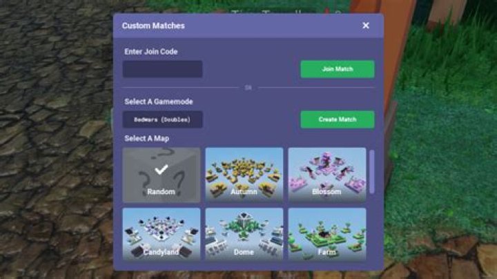 To do a custom match in Roblox BedWars, you will need to turn around from where you spawn in the game and talk to the NPC that says “Custom Matches” over their head. From here, you can join a custom match by inputting a code, or start one by select a gamemode and map and clicking on Create Match!