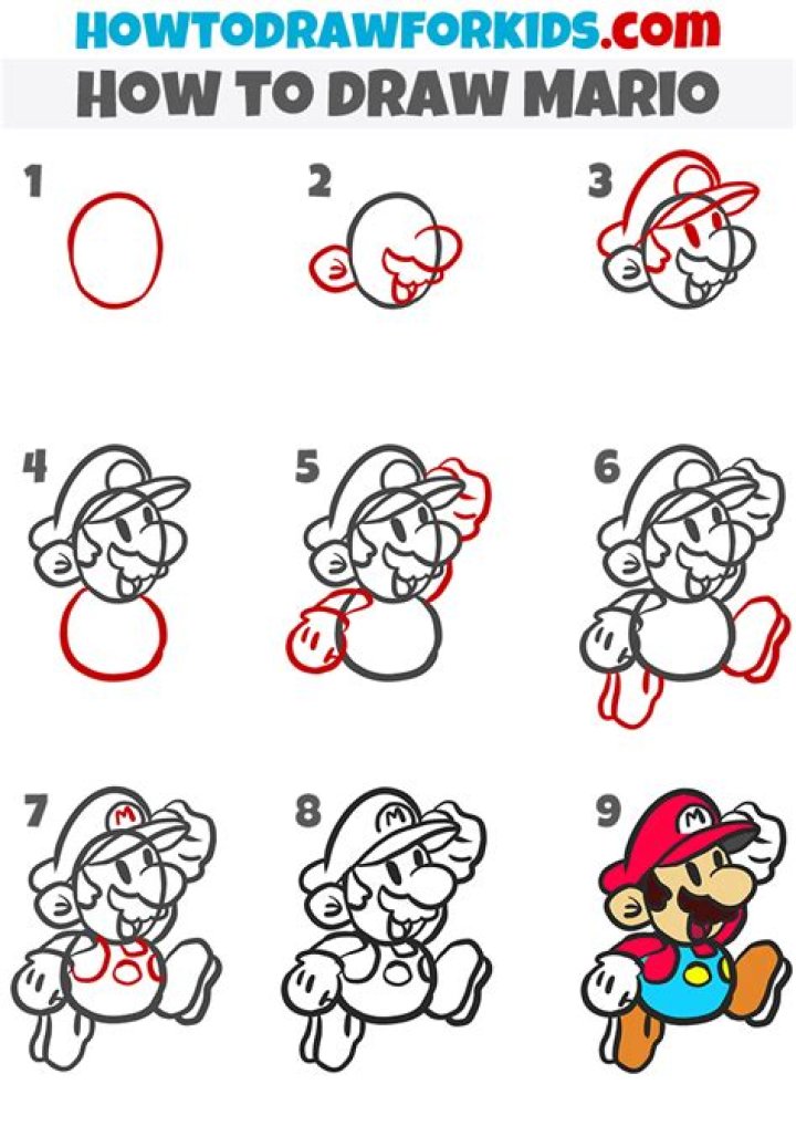 Easy, step by step how to draw Mario drawing tutorials for kids. Learn how to draw Mario simply by following the steps outlined in our video lessons.