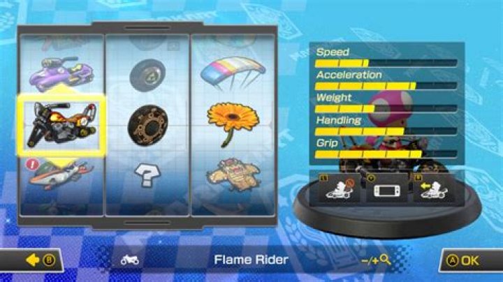 In Mario Kart 8 Deluxe, you start off with access to the following equipment: In order to unlock more Kart, Tires, and Gliders, you need to race in the Single Player Grand Prix mode.