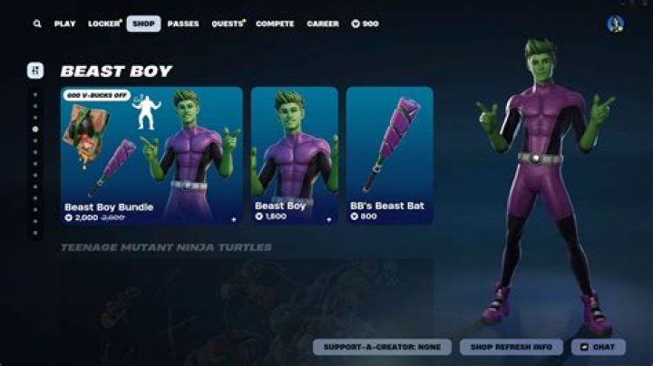 How To Get The Beast Boy Skin in Fortnite Now that the Beast Boy cup is over, players from all around the world are now able to pick up the skin bundle from the shop. The skin bundle will cost the player 2000 V Bucks to purchase. Players can use the V Bucks they earned throughout the season or throw a bit of extra cash into the game.