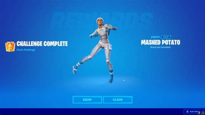 Item ID. EID_MashedPotato. Mashed Potato is a Rare Emote in Battle Royale that can be obtained as a reward for completing 45 Epic Quests during Chapter 2 Season 5 .