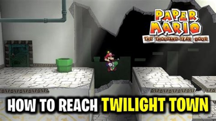 How do you get to Twilight Town in Paper Mario The Thousand-Year Door? Take the warp pipe to the background where Mario can head to the right to find a Star Piece. Then go through the door to find a warp pipe to Twilight Town. Unfortunately the pipe is stopped up, so travel back to the professor to get advice on the situation.