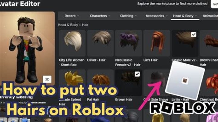 To wear two hairs at once in Roblox, you’ll have to have at least two different hair cosmetics available. So long as you have more than one hair piece, you can equip two hairs through the advanced settings options in the Avatar menu. When you first sign up for Roblox, you’ll start with six different options for your hair. Plus, there are a further six available for free …