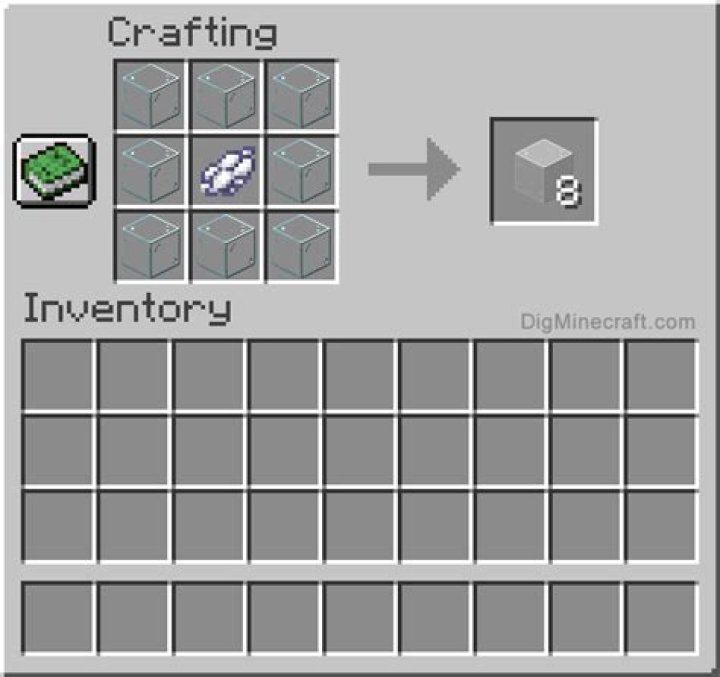 To make white stained glass, place 8 glass and 1 white dye in the 3×3 crafting grid. When making white stained glass, it is important that the glass and white dye are placed in the exact pattern as the image below.