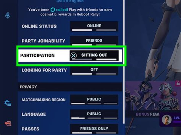 How do you sit out in a lobby? Click on the Friends List menu available towards the left of the screen. Over here, players will be able to see a tiny Settings sign. Clicking on this sign will open a drop-down menu. Find a “Participation” option in …