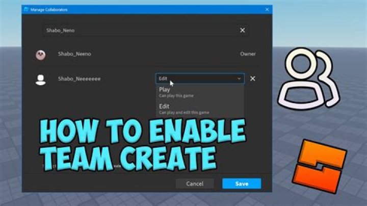Managing EditorsAccessing A SessionCollaborative BuildingCollaborative ScriptingPublishing and SavingRolling Back ChangesTurning Off Team CreateGroup GameIf you’re working on a articles/Group Games|group game and you have the correct articles/Group Games#editing-roles|permissions, you can manage editors as follows: 1. Access Game Settings from the Hometab. 1. Select the Permissionstab. 2. In the Game Ownersection, expand the tree …Individual GameIf you want to collaborate with others but your game isn’t published as a articles/Group Games|group game,you can add editors as follows: 1. Access Game Settings from the Hometab. 1. Select the Permissionstab. 2. In the Collaboratorssection, search for an editor by Roblox user…