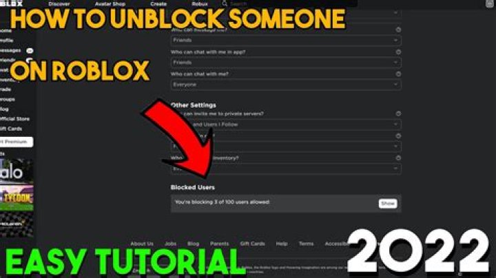 Roblox how to Unblock someone Follow these steps if you accidentally blocked a friend or just need to remove someone from your block list: 1 Login to your account. 2 Go to account settings. 3 Select the Privacy tab. 4 Show Blocked users at the bottom of the screen. 5 Select Unblock next to the player name. 6 Select Save. See More….