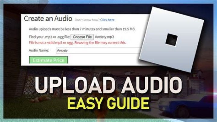 What Format Can I Upload in?How to UploadLimit of Uploading Audio FilesConfiguring AudioUsing AudioUploading can easily be done through the roblox.com website. To do this: 1. Log into your account on roblox.com 2. Click Createin the blue bar at the top of the screen 3. Click on Audio 4. Click Browse, and select an audio file 5. Once selected, click on the “Upload” button Note: Audio uploads must be less than 7 minutes, smaller than 20.0 MB, clea…