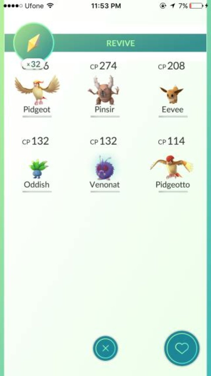 After a battle, tap the Pokèball and tap Items. Tap Revive first and all the Pokèmon that fainted during battle will appear here. All have zero HP. The Revive will also restore some of their HP. Tap the Pokèmon you want to revive. A little heart badge appears around the Pokèmon to show that the revive has been applied.