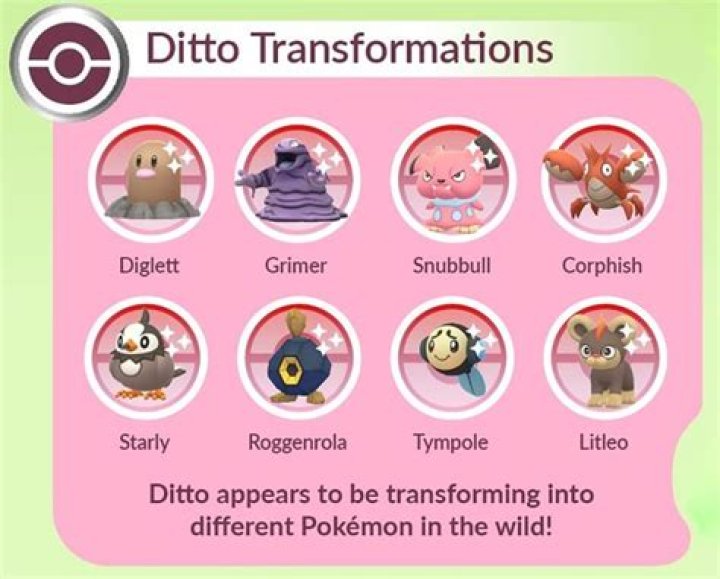 What Pokémon Ditto can be as in Pokémon Go changes too, so it’s good idea to know which creatures its currently appearing as if you want to find one, especially if you wish to add a shiny Ditto …