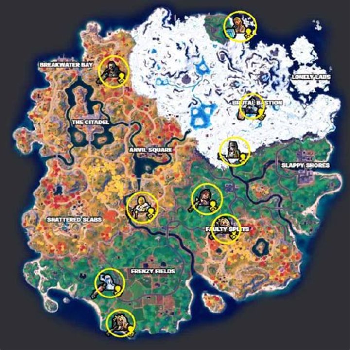 A few options when it comes to dueling characters in Fortnite include Brutus at Dirty Docks, Kit at Catty Corner, Menace at Colossal Coliseum, Kondor at Misty Meadows, Blaze near Holly Hedges, Ragnarok at the Viking Vessel near Holly Hedges, and Big Chuggus at Slurpy Swamp.