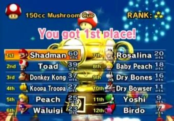 How does Mario Kart Wii decide your rank letter (A, B, C, D, E, F) or star in a Cup that you raced? Show activity on this post. There is no official information on what determines your rank. A good track time seems to matter the most, but many elements are speculated to also help: Though these are not confirmed, they serve as good guidelines.