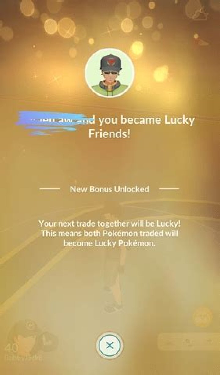 You’ll be notified by an in-app notification and will be able to see that they’re your Lucky Friend in your Friend List and Friend Profile page. When you are Lucky Friends with someone, the next time you trade with each other, both Pokémon will become Lucky Pokémon. After the trade, your Lucky Friend status will be cleared.