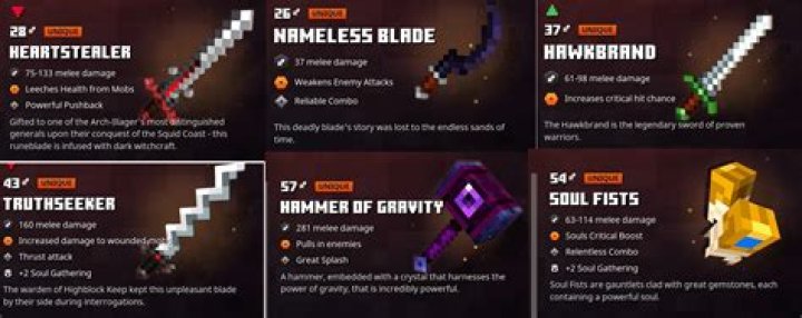 14 Best Minecraft Dungeons Weapons In 2021 1. Hawk Brand Sword. Hawkbrand Sword is one of the best swords to begin the Minecraft journey and get used to melee… 2. HeartStealer Sword. Gifted to one of the Arch-Illager’s most distinguished generals upon their conquest of the squid… 3. Nameless …