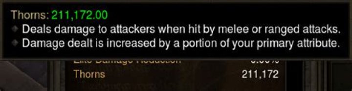 Show activity on this post. Thorns is short for “damage done to attackers when hit by melee attacks”, so you’re correct. Any equipment or skill* that deals damage to melee attackers counts as Thorns. The text you want to look for is “Melee attackers take XXX damage per hit.” This shield for example has 26 “Thorns”: