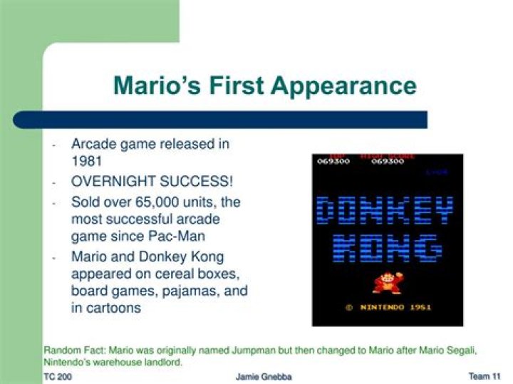 Mario first appeared in the 1981 arcade game Donkey Kong as Jumpman and became an instant celebrity during the period when more than 60,000 arcade machines were sold.