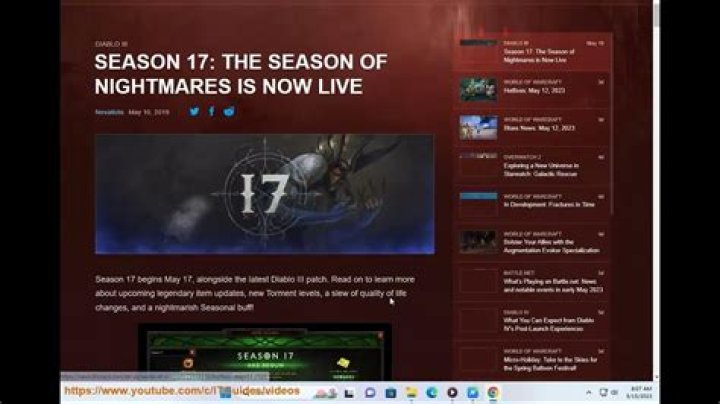 Season 17: The Season of Nightmares is Now Live. Nevalistis May 10, 2019. Season 17 begins May 17, alongside the latest Diablo III patch. Read on to learn more about upcoming legendary item updates, new Torment levels, a slew of quality of life changes, and a …