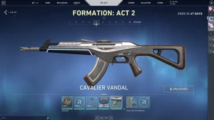 Play VALORANT during Act II, earn XP, and progress toward unlocking cosmetic items for your collection: weapon skins, Player Cards, Gun Buddies, Sprays, and Titles. Buy the Act II Premium Battlepass to add another layer of goods like the Cavalier Vandal or the Prime III melee axe with variants. Learn more about VALORANT’s Battlepass system here.