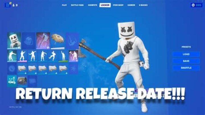 Is the Marshmello Skin Coming Back to Fortnite 2021? The new Gold Marshmello Fortnite skin set will be in the item shop today for December 14th/15th 2021. Epic Games have collaborated with numerous content creators, companies, and artists. One of the best early collaborations was with Marshmello.