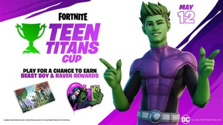 May 12Fortnite has officially announced the Teen Titans Cup, a limited-time cup that will begin on May 12. Players will be able to compete in the duos tournament for the chance to unlock the Beast Boy Outfit and Couch Titan Back Bling before they hit the Fortnite Item Shop on May 14 at the following times: 1AM BST | 5PM PT | 8PM ET
