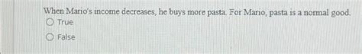 When mario’s income decreases, he buys more pasta. for mario, pasta is a normal good.