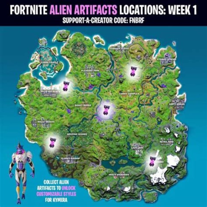 Alien Artifact 1 – located south of Craggy Cliffs and just east of Pleasant Park; Alien Artifact 2 – located southwest of Boney Burbs; Alien Artifact 3 …