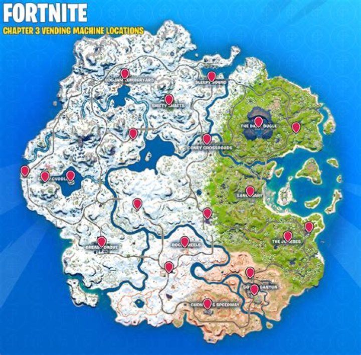 Malfunctioning Vending Machine Fortnite Chapter 3 Season 1 Locations. Based on the map above, your best bet is to head to Sleeping Sound as there are three different vending machines. Your next best option is Coney Crossroads. As the two are close together, we recommend droping at one of the two locations and then going to the other.
