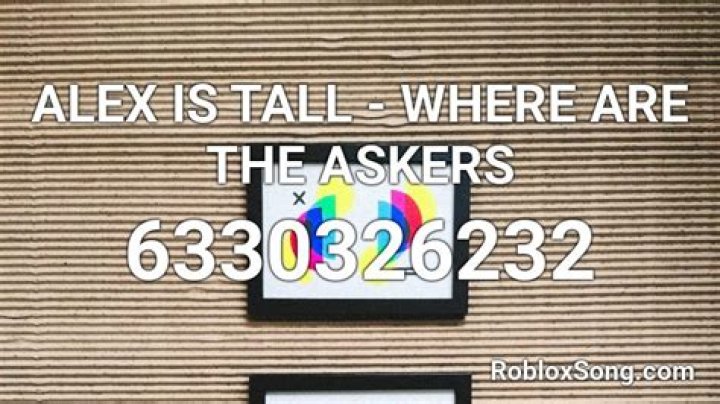WHERE ARE THE ASKERS – ALEX IS TALL Roblox ID. Here are Roblox music code for WHERE ARE THE ASKERS – ALEX IS TALL Roblox ID. You can easily copy the code or add it to your favorite list. 6330326232. (Click the button next to the code to copy it)
