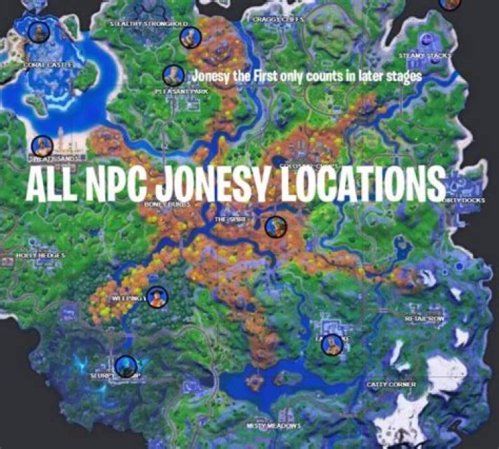 Fortnite Epic This map is missing one, given that original Jonesy in Pleasant Park does not seem to count for this challenge for whatever reason, but the other ones are: In …