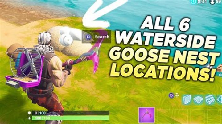 Where to search Waterside Goose Nests – 14 Days of Fortnite. Goose nests look like small piles of creamy yellow grass and hay, and if you walk up to one you’ll be able to interact with it to search. Unsurprisingly the goose nests have been added near to various bodies of water on the map, but it’s still easy to miss some of less commonly travelled spots. There are more than …