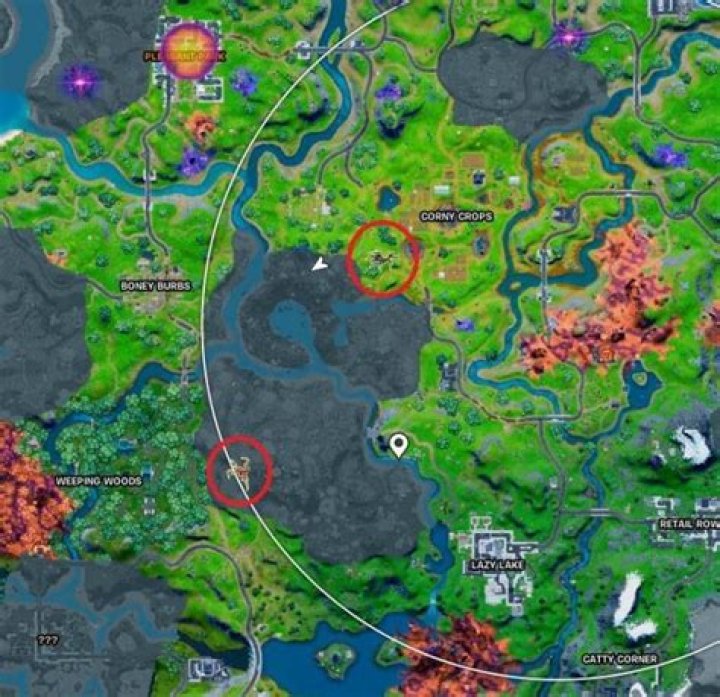 While Venom and Carnage can spawn seemingly anywhere on the map, the two locations they appear in most frequently are the fields just southeast of Boney Burbs and north west of Corny Crops. The symbiotes will be floating in a canister.