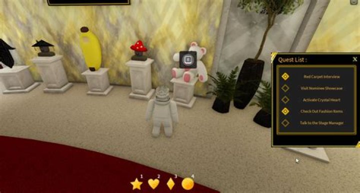 Visit Nominee Showcase. Next, continue up the steps, and make your way into the building. Walk to the right to visit the Metaverse Design Nominees section. You can find all of the fashion collections in this area. Speak with the woman in the center of the area to check this objective off the list. Activate Crystal Heart