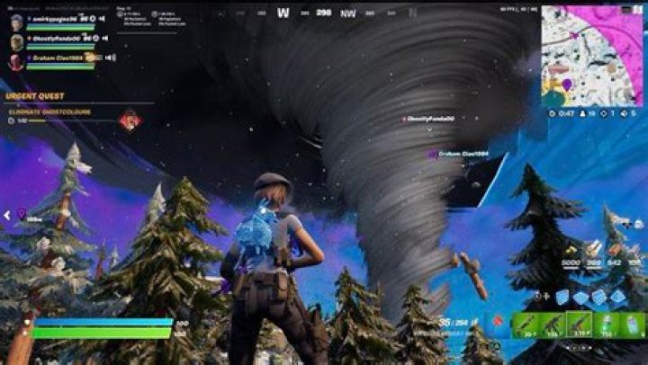 To find a tornado in Fortnite, you need to look around for large dark clouds. Most of the dark clouds you’ll spot will turn out to be thunderstorms.